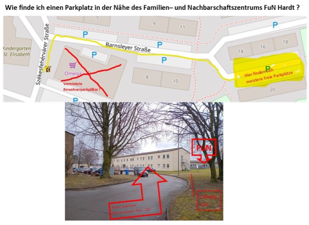 Um Ärger zu vermeiden: 1) bitte nicht direkt vor dem FuN Eingang parken. Die sumpfige Wiese vor dem FuN ist durch Parkmanöver arg in Mitleidenschaft gezogen worden. 2) bitte nicht auf vermieteten Anwohnerparkplätzen das Auto abstellen. Stattdessem finden